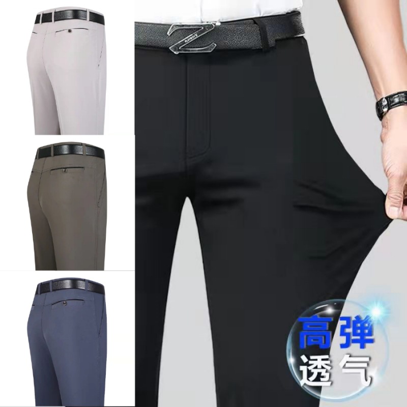 Quick-drying stretch pants Ice silk breathable ultra-thin summer thin middle-aged and elderly men's pants middle-aged business men's casual pants