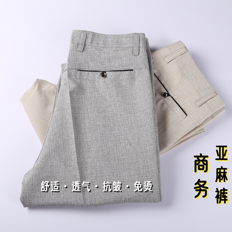 Business men's pants linen summer thin middle-aged men's casual pants in old dad with loose high waist long pants
