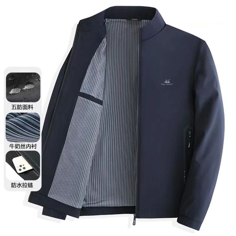 Live cattle business casual jacket men stand collar middle-aged men's coat spring and autumn middle-aged dad jacket